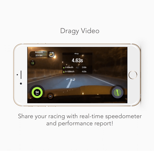 Record your racing with realtime performance and speed reports shown straight to your phone.