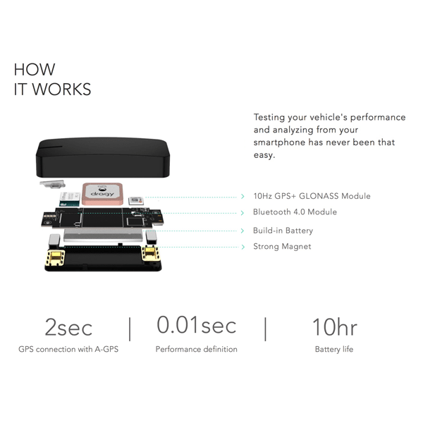 Dragy connects to its first GPS within 2 seconds of being turned on.