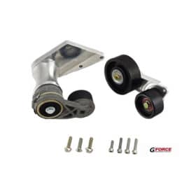 A heavy-duty 8-rib tensioner paired with oversized idler pulleys increases belt contact and stability, helping prevent the belt slip often seen with factory hardware—especially on higher-boost or modified engines.