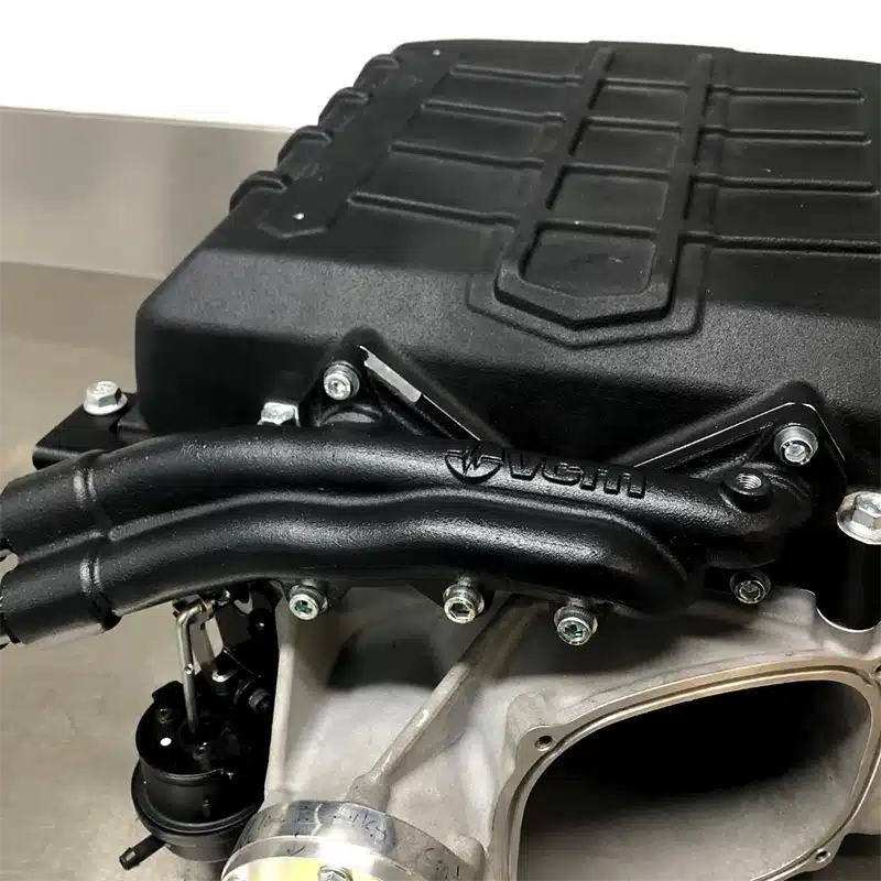 Enhance your Magnuson Supercharger MPI 2650 with the VCM custom design cast alloy water manifold! Achieve that polished OEM factory look while ensuring a secure and robust intercooling system with improved water flow and fewer components.