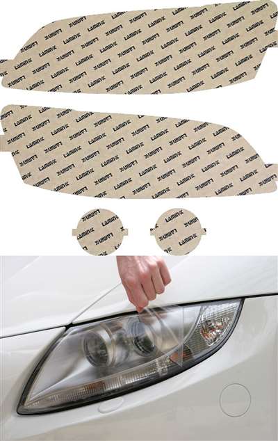 Our headlight films are made from impact-resistant 12 mil protective film with adhesive-backing to protect your lights from the cloudiness that occurs over time and also road debris. The adhesive on our films are designed to be extremely forgiving. You can apply numerous times during initial application to get the installation right. These precut kits cover both sides and also include the lower lights.