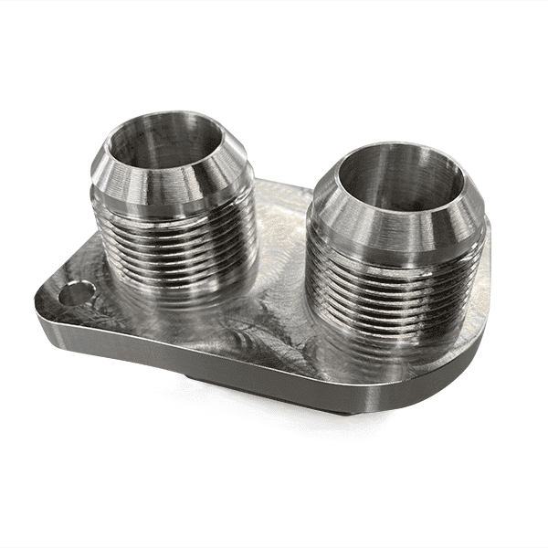 These replacement water manifolds are intended for the CTS-V LSA supercharger cover. They are made from a single piece of 6061 aluminum and feature dual 16AN male connections so you can run 16AN lines without the need for adapter fittings. The outlets are spaced appropriately to prevent any collision of the hex nuts during tightening.