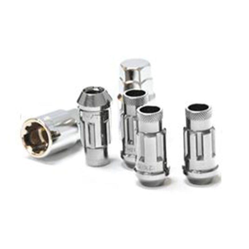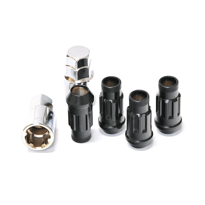While the 19 Hex is unique, sometimes you need that extra bit of security to ensure you wheels stay on your car at all times. Monster Lug Lock Set ensures that your wheels are secure while matching the good looks and quality of the Monster Lug. Made of the same Cold Forged Chrome Vanadium, the Lock Set is OEM tough and race car proven, as it was derived by racing. The oversized 60 degree tapered seat ensures better contact on the wheel and the top knurl makes installation easier. The Lock Set is open-ended to accommodate extended wheel studs. Monster Lug Lock Set will keep your wheels secure.